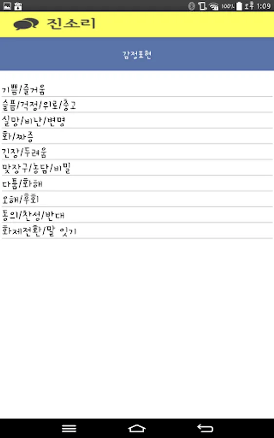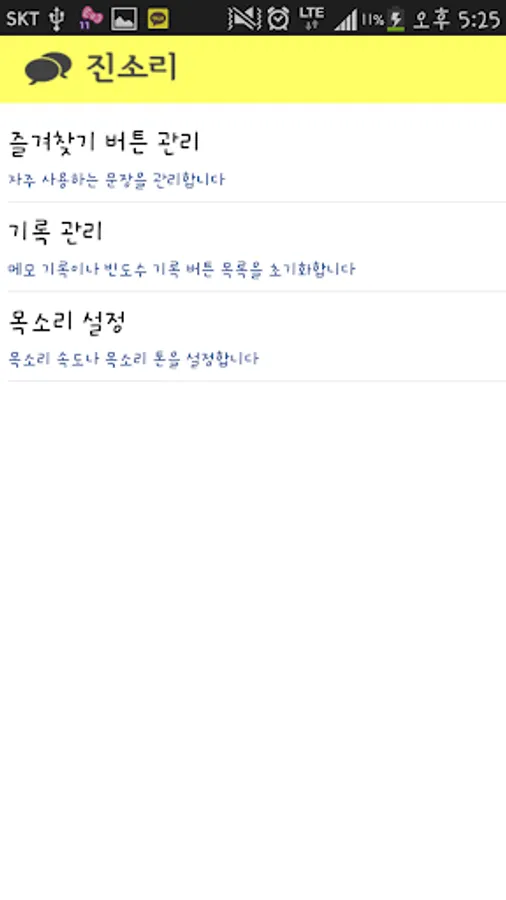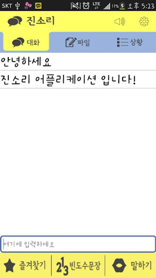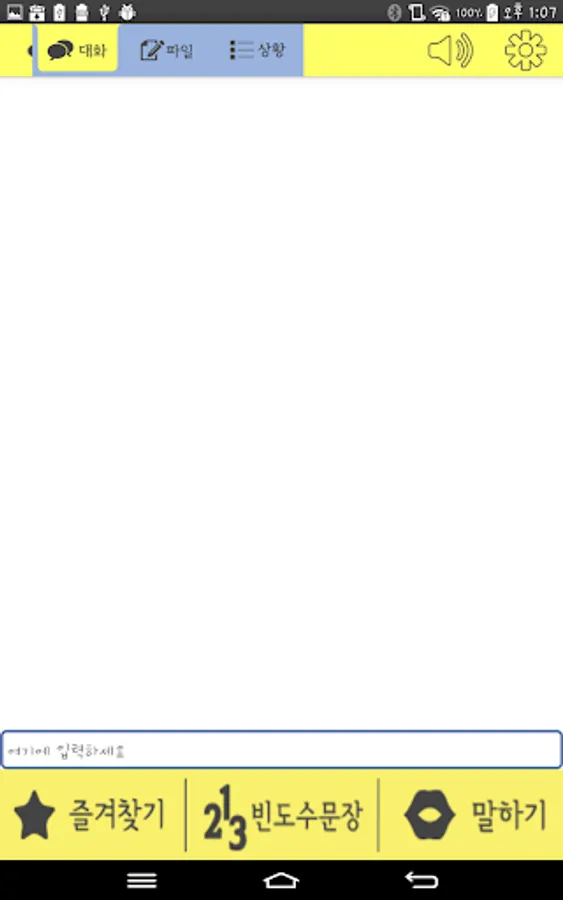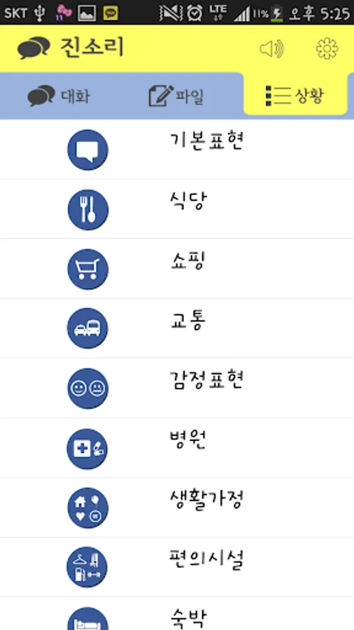 1. 대화 : 일상생활에서 가볍게 이야기하는 단어나 문장을 음성으로 출력할 수 있습니다.