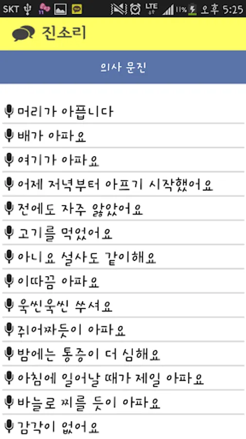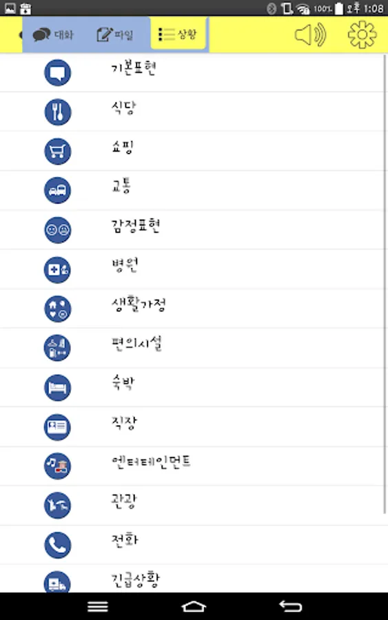 3. 상황 : 각 상황에 맞는 문장들을 담고 있어 선택 시 음성으로 출력해줍니다.