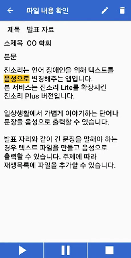 2. Playlist: If you need to say a long sentence such as a presentation, you can create a text file and print it out in voice. Depending on the subject, you can add files to the playlist.