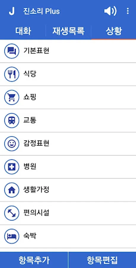 3. Situation: Contains sentences appropriate to each situation, and when selected, is output by voice.