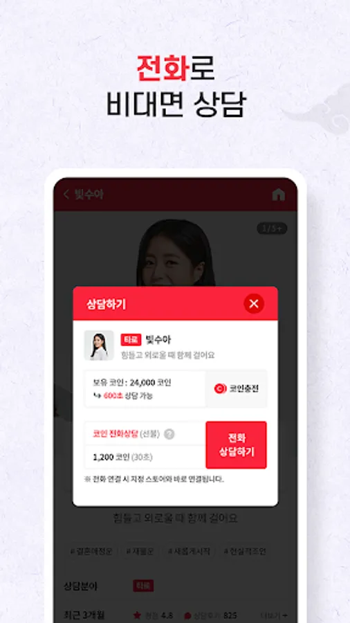 Up to 10 minutes of free calls just by signing up! Up to 50% discount compared to 060 consultation when using coins!