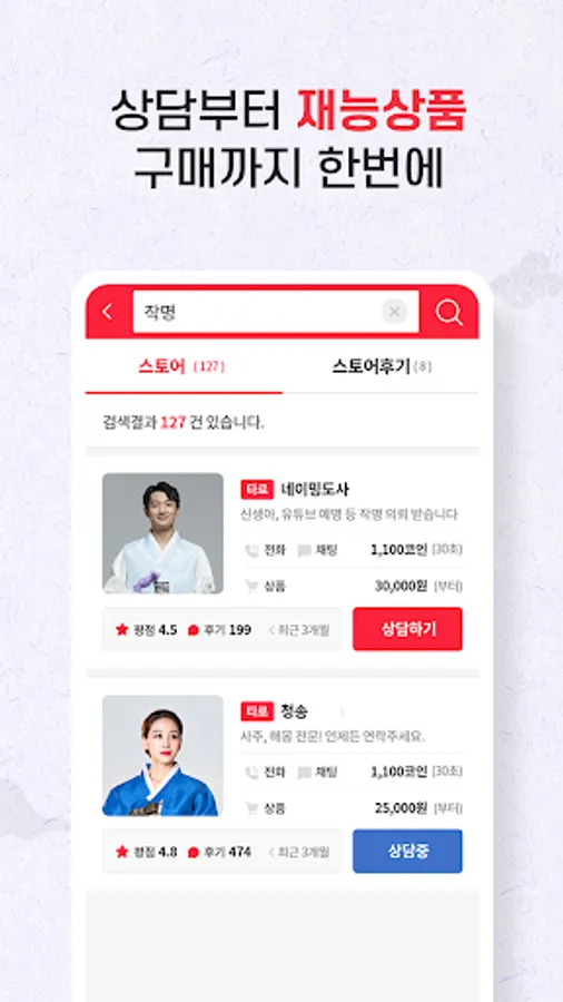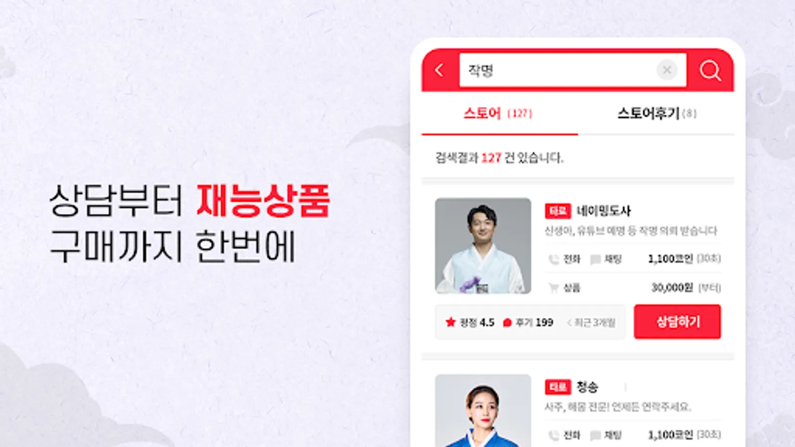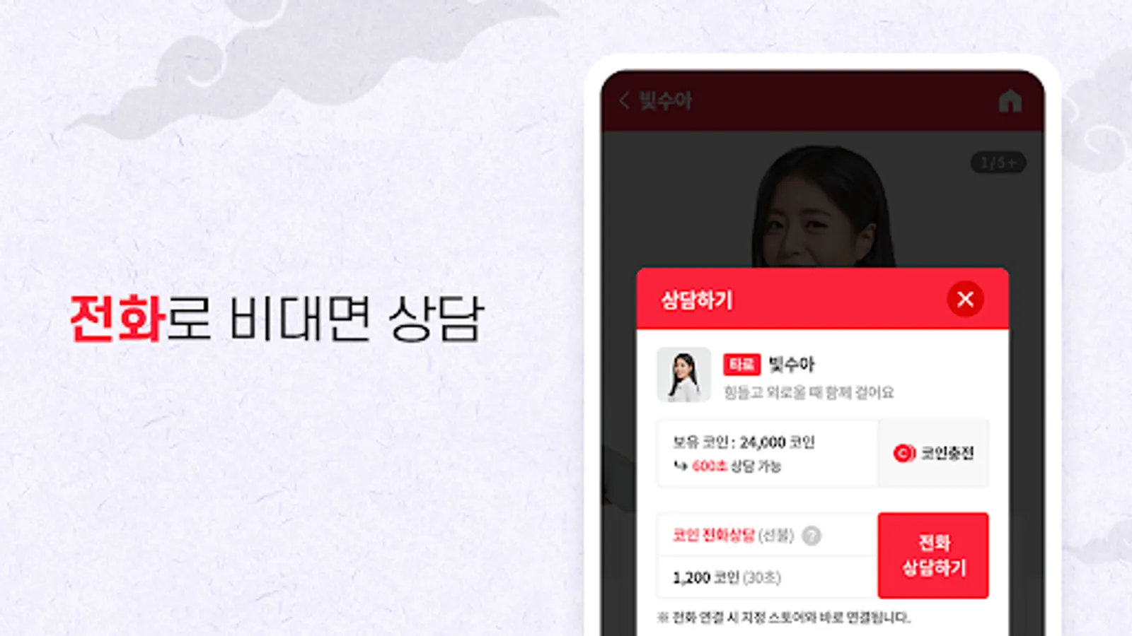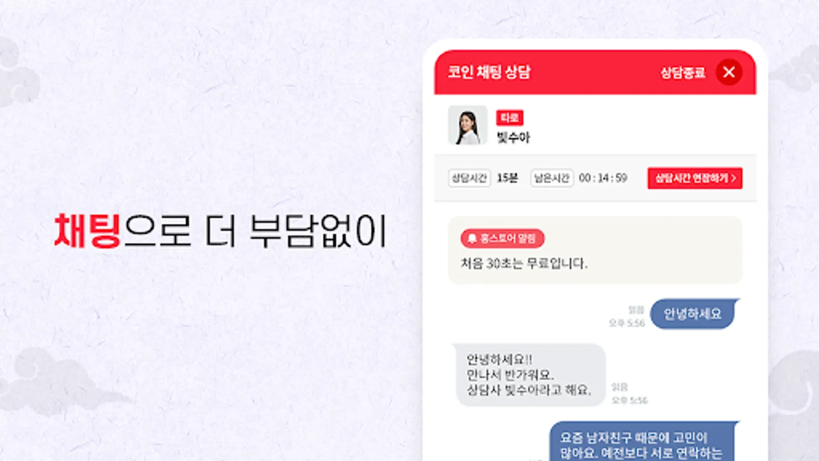 You can have real-time consultations with experts through 1:1 phone consultation and chat, from worries, psychology, love, employment, and learning counseling to fortune-telling fields such as tarot, four orders, and new stores.