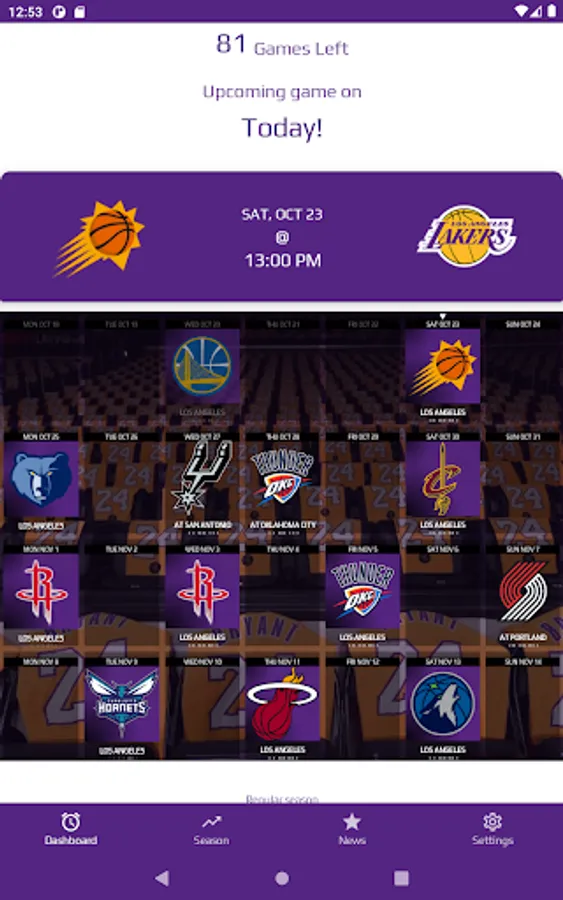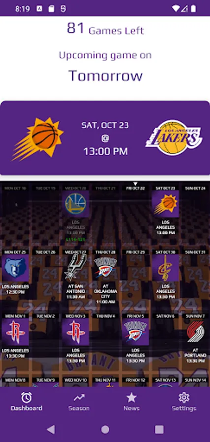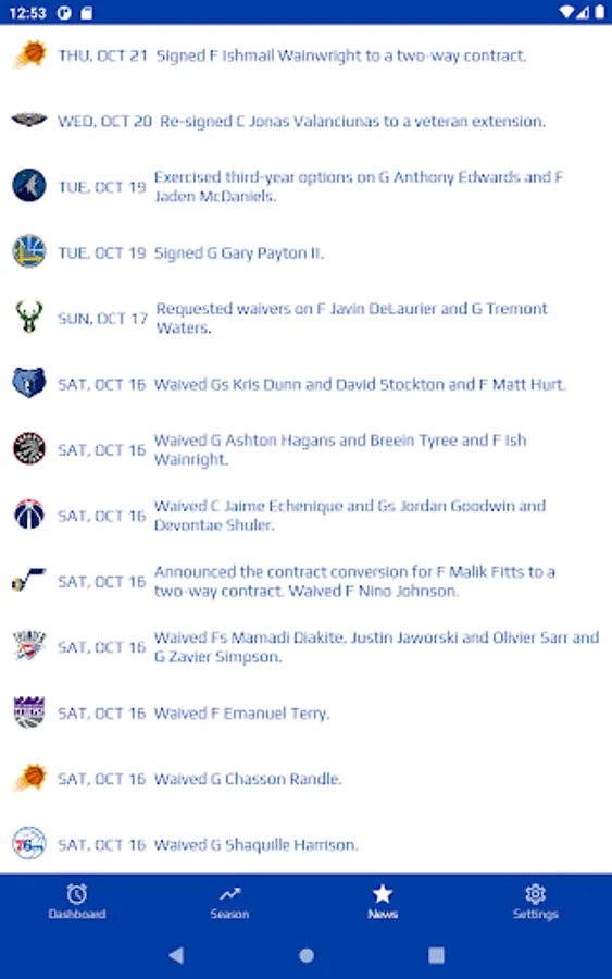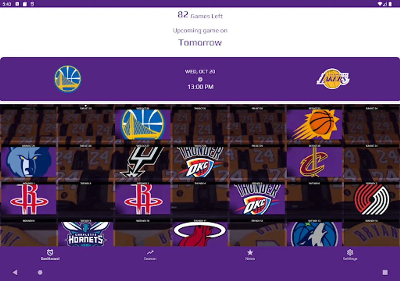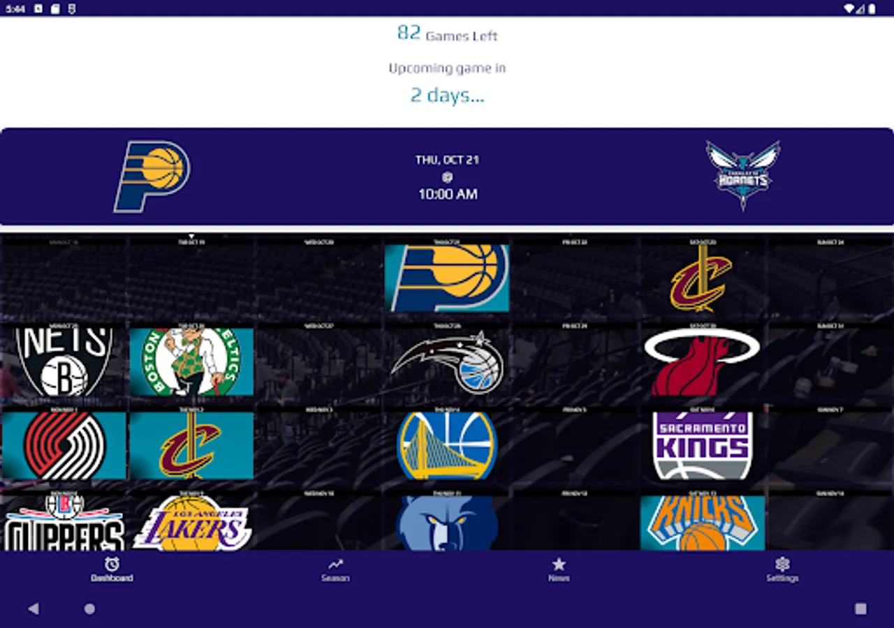 You may see team schedule, standings, news(Mainly officially announced transactions).