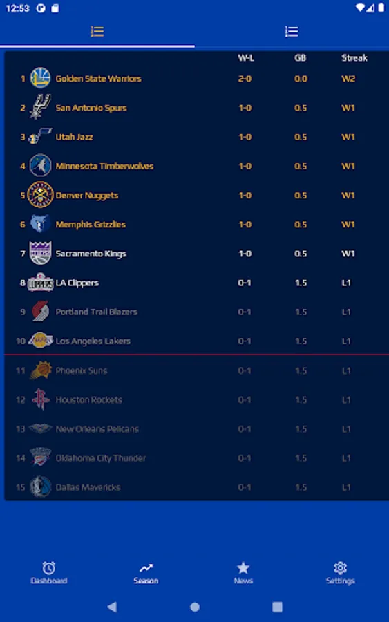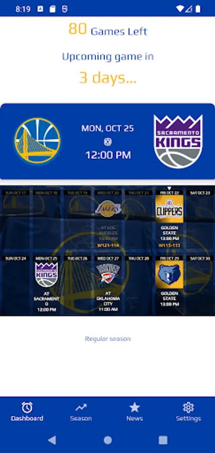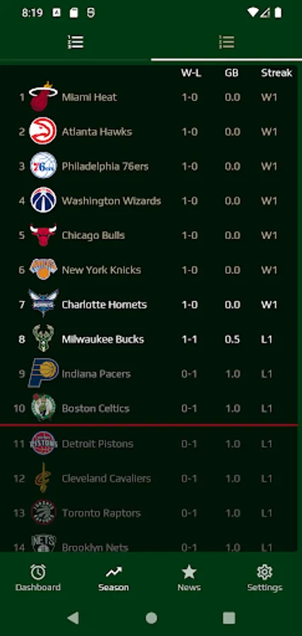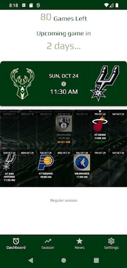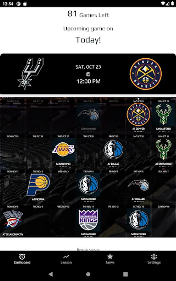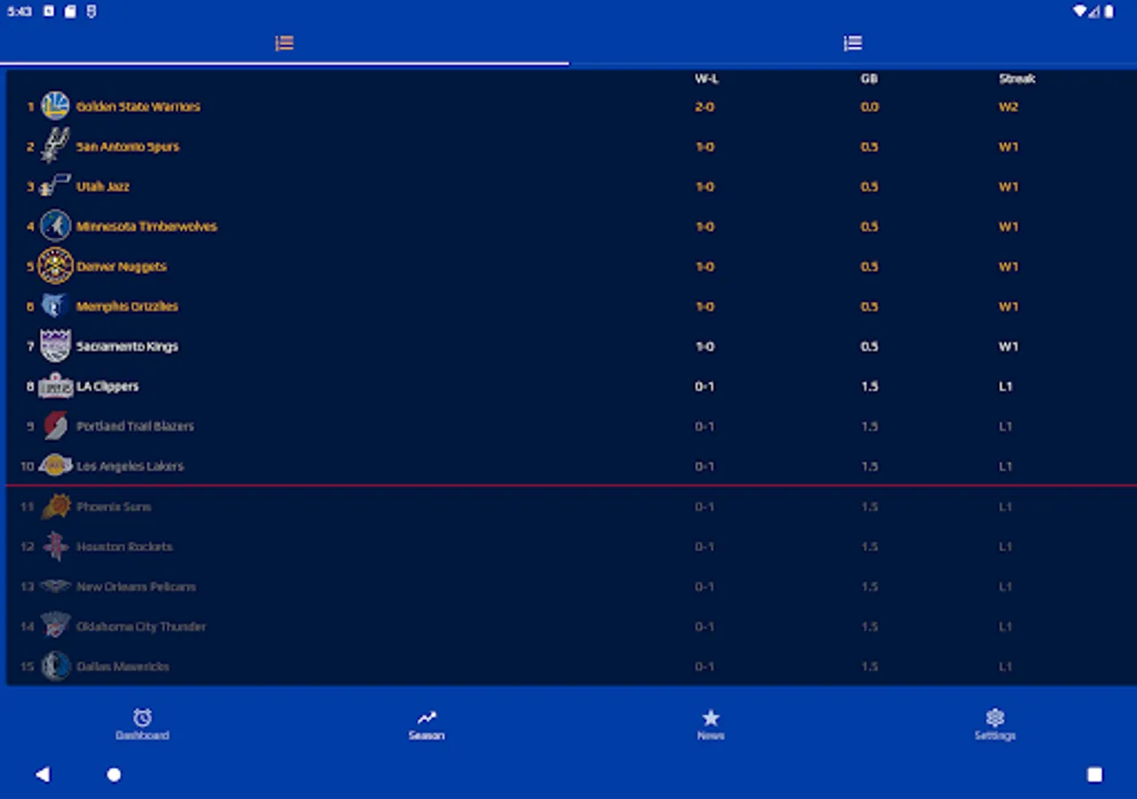 You may see team schedule, standings, news(Mainly officially announced transactions).
