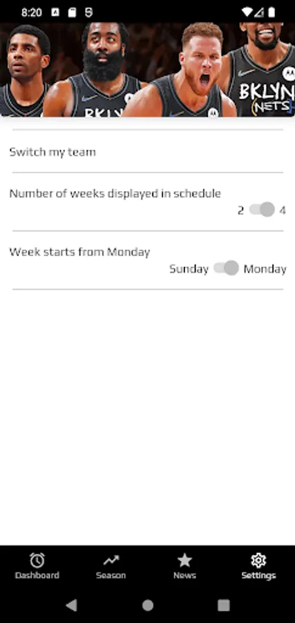 Through settings, you may alter your home team, and the app will use the theming based on your home team colors.