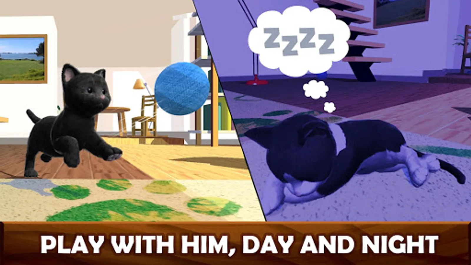 - Give food to your own kitten, play ball of wool, play with a lasersight, help him to scratch his nails in cat tree, like a true kitten !