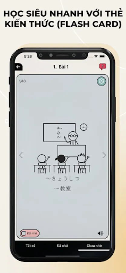 2. Flashcards: With Japanese in front and mother language in the back, you can flip the flashcards to check your knowledge and focus on practicing over and over the ones not memorized yet.