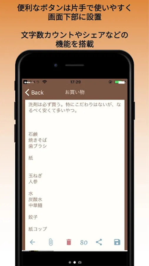 Buttons are gathered at the bottom of the screen for easy use with one hand. Please use it for simple notes.