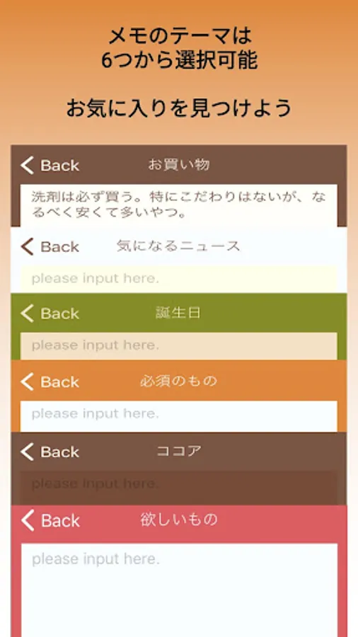 You can select a color theme for each memo, so you can use it according to the purpose and importance. You can change it later.