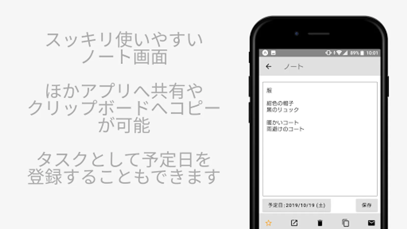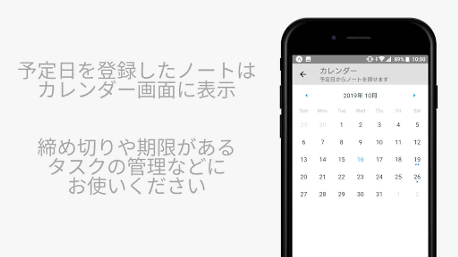 You can register the scheduled date in the note. If you register a scheduled date, notes will be displayed on the corresponding date in the calendar.