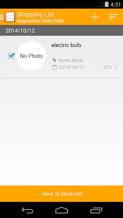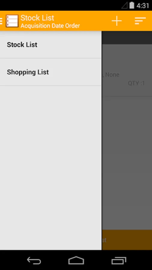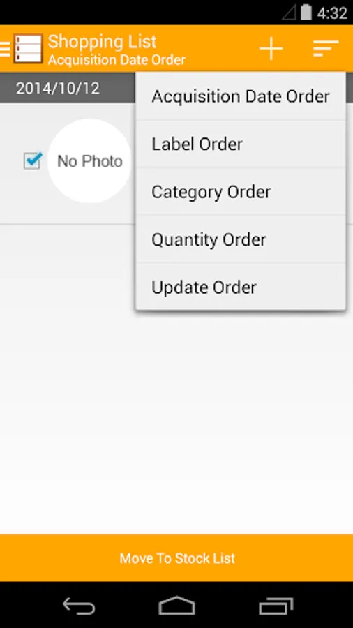 - In shopping list, itmes can be sorted by Label, Category, Update Date, Acquisition Date, Quantity