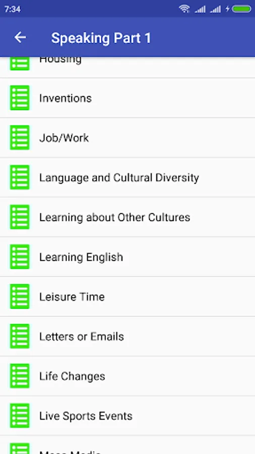 IELTS Skills app including 4 main parts standing for each typical skill: