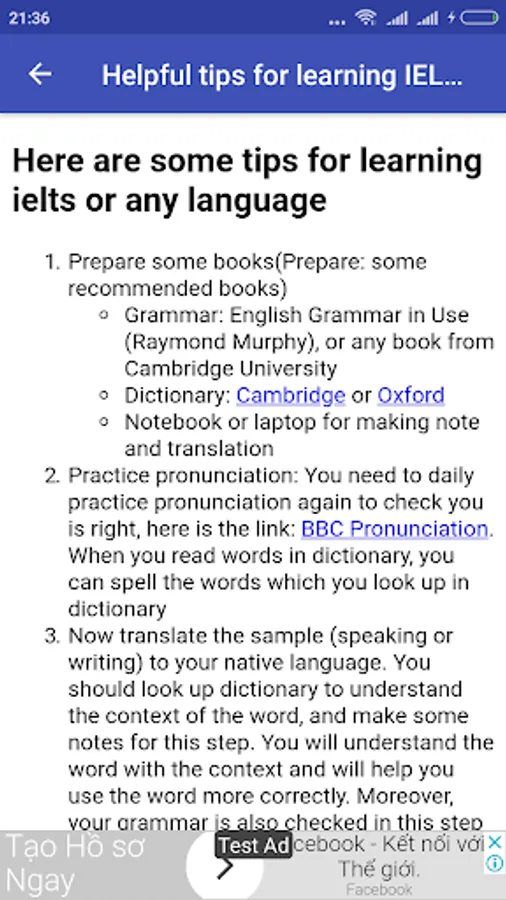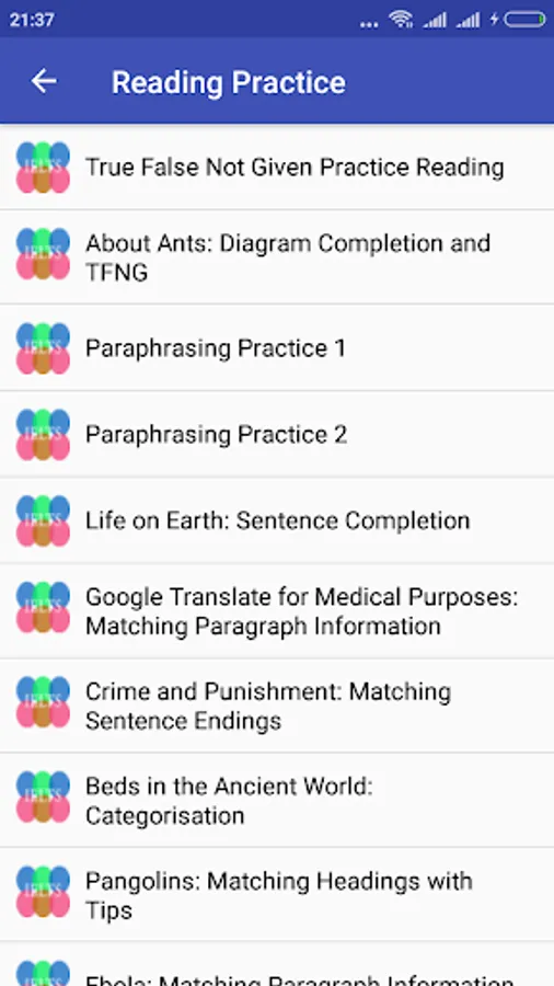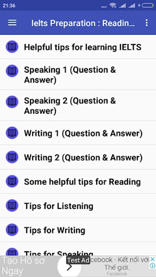 IELTS Preparation- Reading Practice: Free provides samples that content each IELTS Preparation- Reading Practice app including Reading, listening, writing and Speaking skills all represented in the sample contents and tips or tricks to solve test lesson.