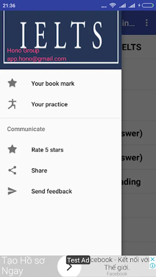 IELTS Preparation- Reading Practice app including 4 main parts standing for each typical skill: