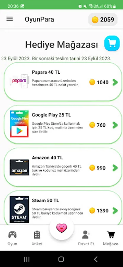 You can increase your earnings by inviting your friends to OyunPara. When each friend you invite passes a certain point threshold, bonus points are earned for both you and the person you invite. You can expand these opportunities even further by inviting more friends. Since there are no limitations, the more friends you invite, the more rewards and bonuses you have.