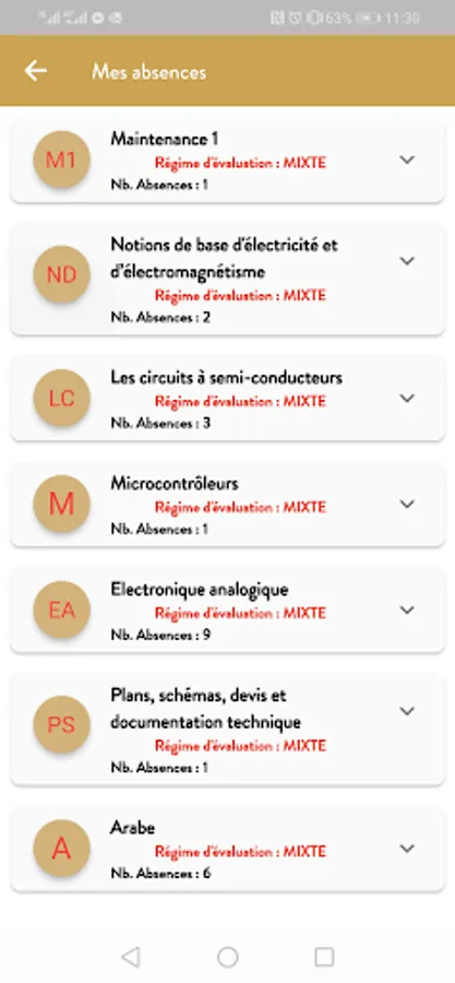 - View your absences by subject, date and teacher