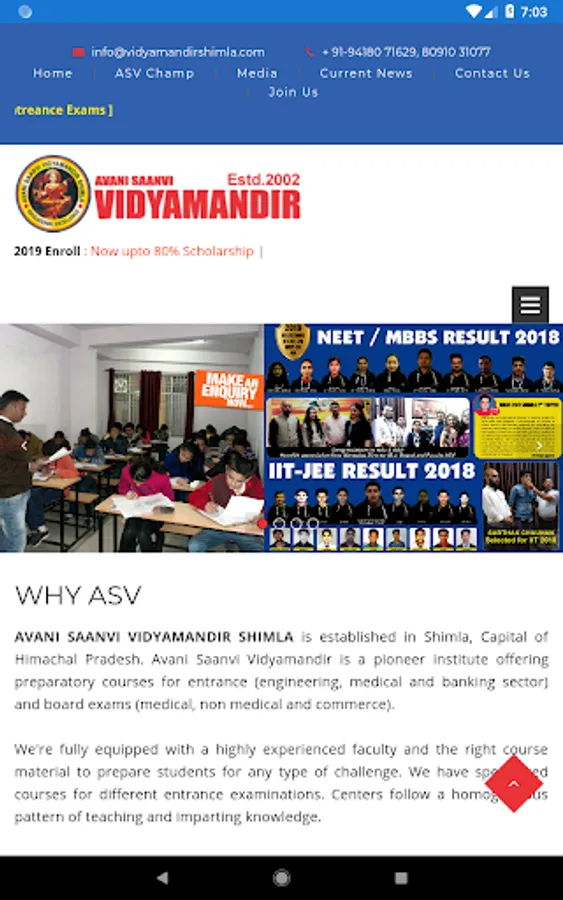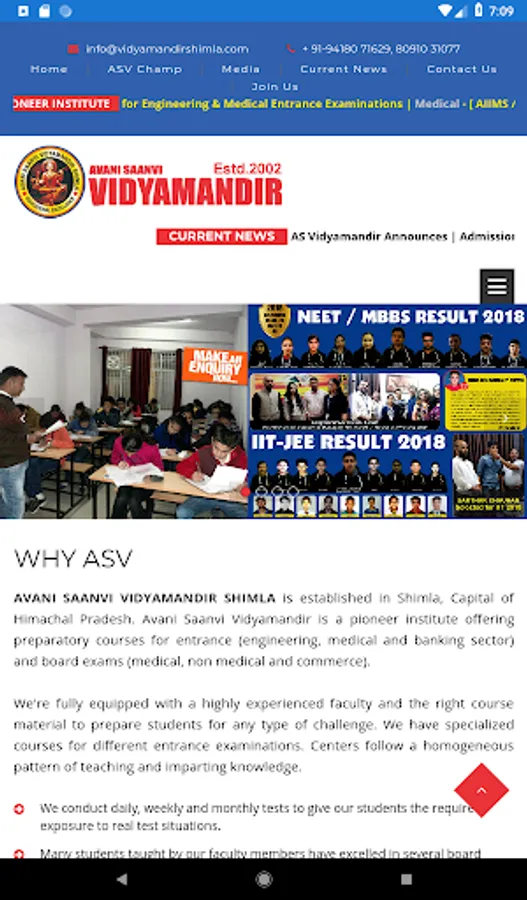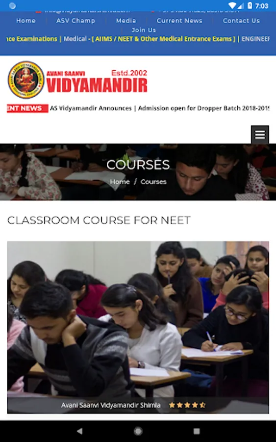 AVANI SAANVI VIDYAMANDIR SHIMLA is established in Shimla, Capital of Himachal Pradesh. Avani Saanvi Vidyamandir is a pioneer institute offering preparatory courses for entrance (engineering, medical and banking sector) and board exams (medical, non medical and commerce).