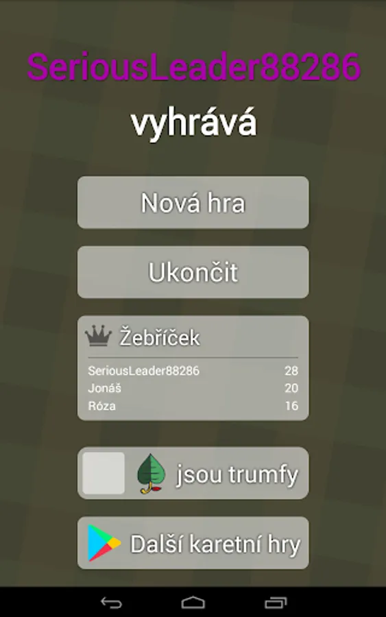 Playing cards are arranged in a circle (the meadow) and one is placed in the middle. Each player must match the suite of the middle cards and then play one additional arbitrary card. Then the next player takes their turn. If the player does not have a playable card, they must take one from the meadow. Whoever gets rid of all cards in hand after the meadow is cleared wins the game. If the meadow is gone and a player does not have a playable card, they must take the middle card and all cards of the same suite directly under it.