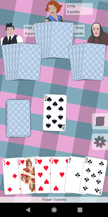 Each player receives 6 cards and plays one of them during each trick. The last player, who played a card with the same value as the firts card of the trick, wins the trick and plays first in the next one. After the trick is won, players take one card from the side deck. A player cannot start the trick with a card of the same value 3 times in a row.