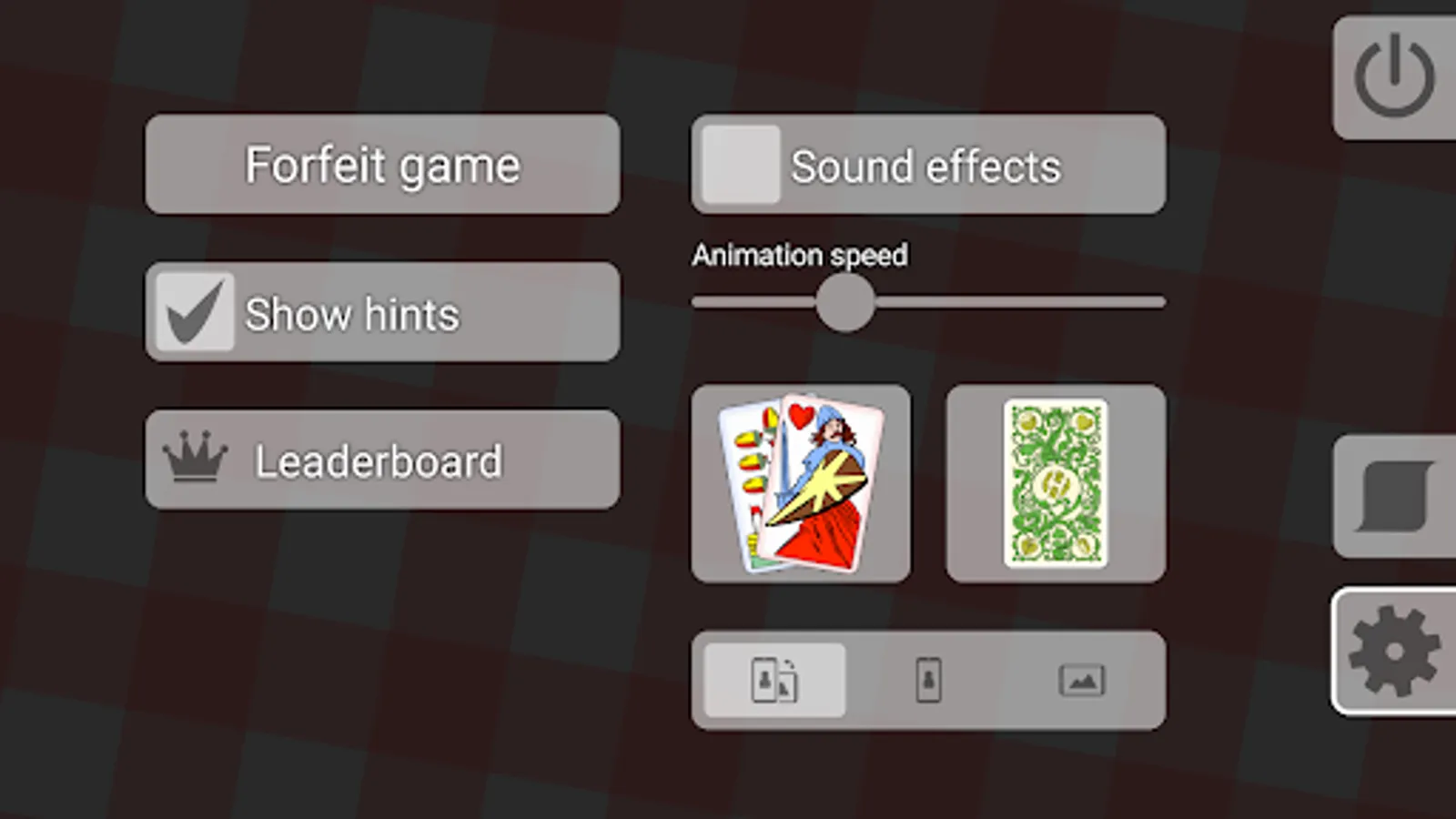 You can adjust game speed, enable sound effects, select your card deck and compare your score with other players.