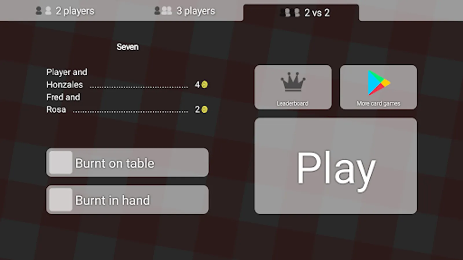 Seven is a card game popular is several European countries. It is played with a deck of 32 cards and belongs to the marriage family of card games. It is a fast and exciting game, best played when waiting for a train to arrive. If you want to win, you must focus and remember, which cards were already played as correct decision-making is crucial in the long run.