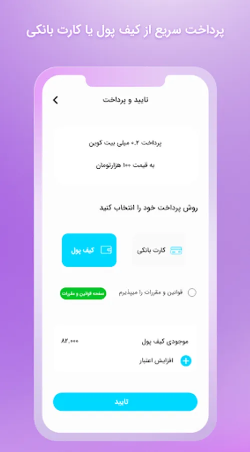 Experience the easiest micro investment by minimum amount of capital in Paydaa Plus. The first purchase of Bitcoin with a reasonable price and the lowest fee is your gateway to the world of cryptocurrencies, which is provided on a secure platform.