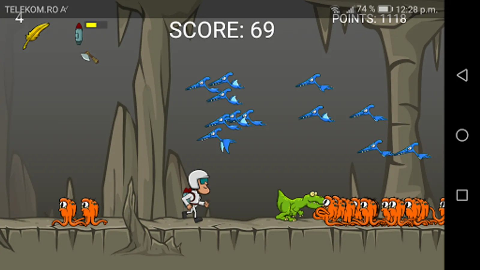 Player must shoot at pterodactyl flying in the sky to get collectable and upgrade wepon.