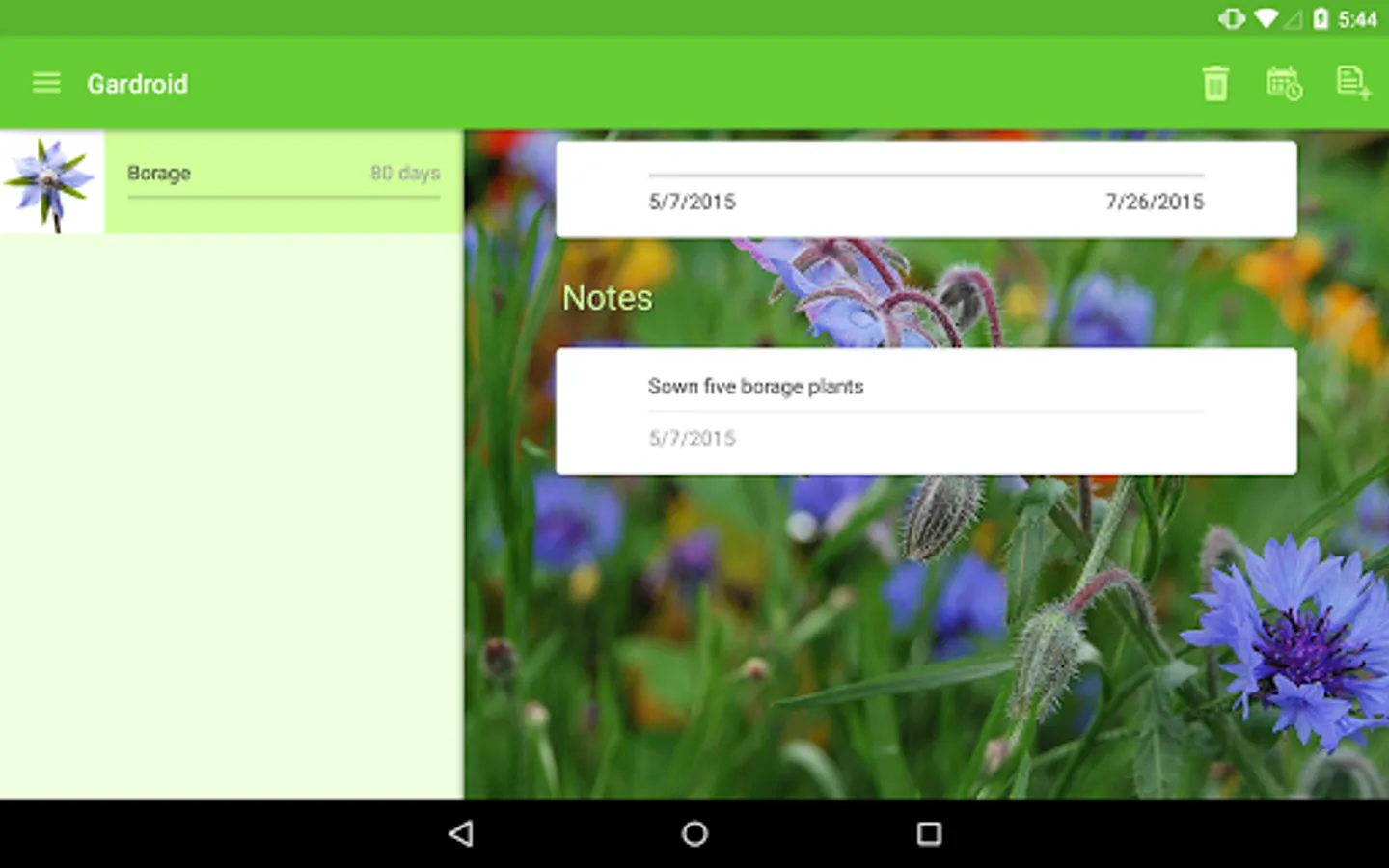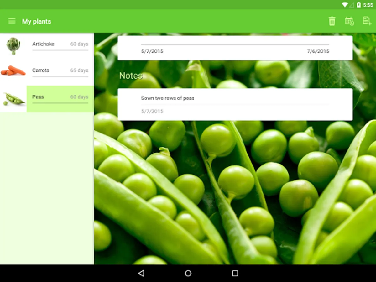 • Gardroid allows you to put the probable harvesting day for each plant in your calendar, so you have an idea when you’ll be able to enjoy your fresh crops!