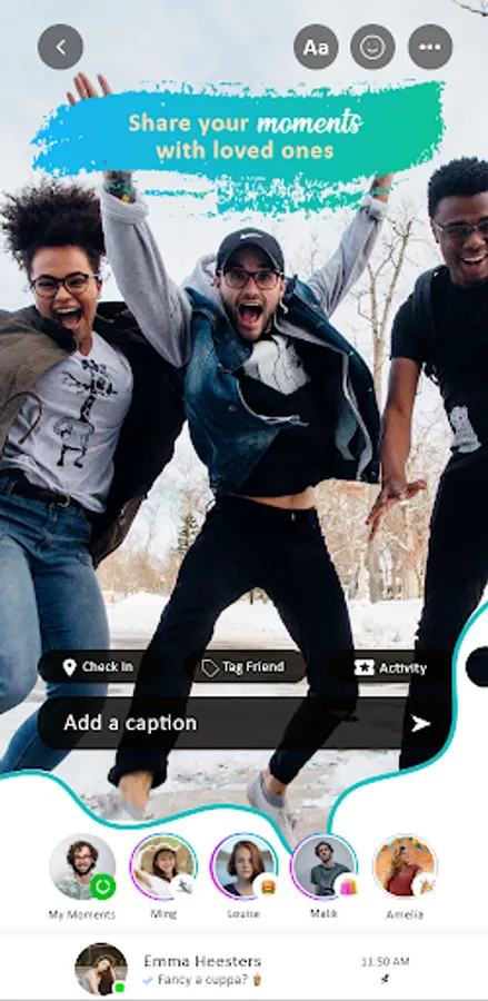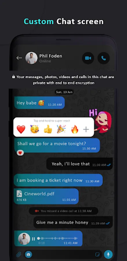 CHAT: Interactive chat screen to keep you connected with your friends and family on 1-2-1 or in a group chat with loads of features such as reactions, stickers, audio & video messages, media sharing, polling and so on