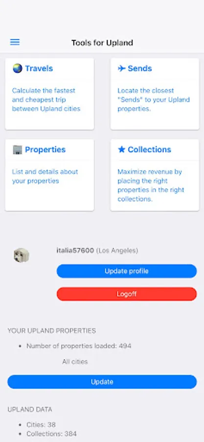 - Connection between our App and Upland.me is needed (no password needed, we use the Official "Upland Third-Party application" method)