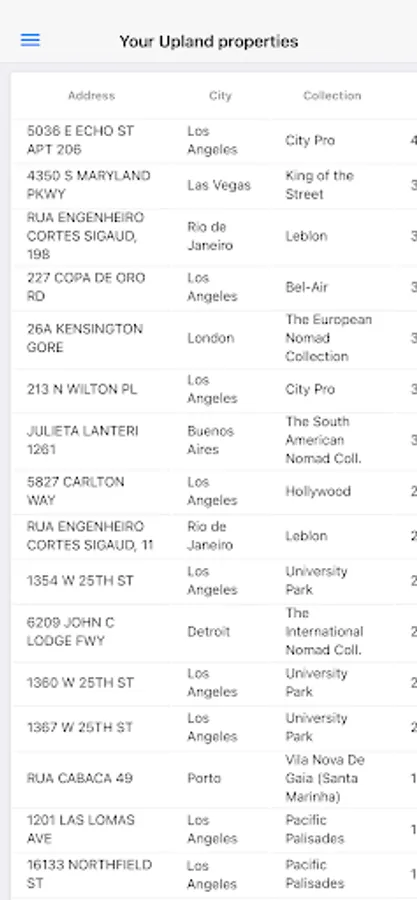 - List and details about your properties (exportable to CSV) : id, street, name, mint price, last purchase price, gps location...