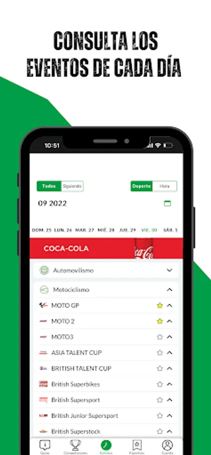 Hoolisport is the sports agenda you need. More than 50 sports so you don't miss your favorite competitions. Easily access the events calendar, where you can see what is at stake each day. You can filter only your favorite competitions if you wish. If you want to start following a new sport or competition, with our exclusive guides you will be able to do it quickly and easily.