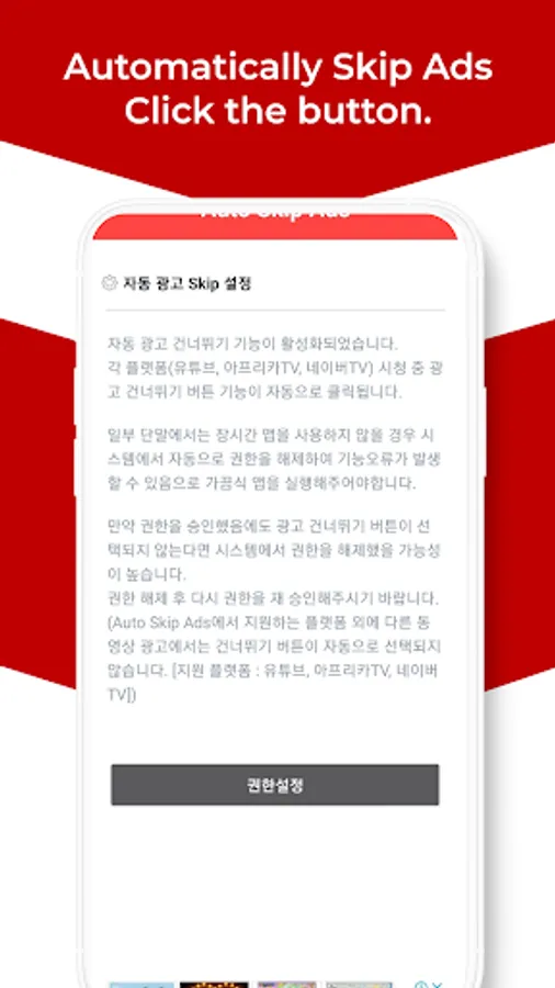 * The Auto Skip Ads app works only when the Ad Skip button is activated on each platform, and does not prevent ads from appearing.