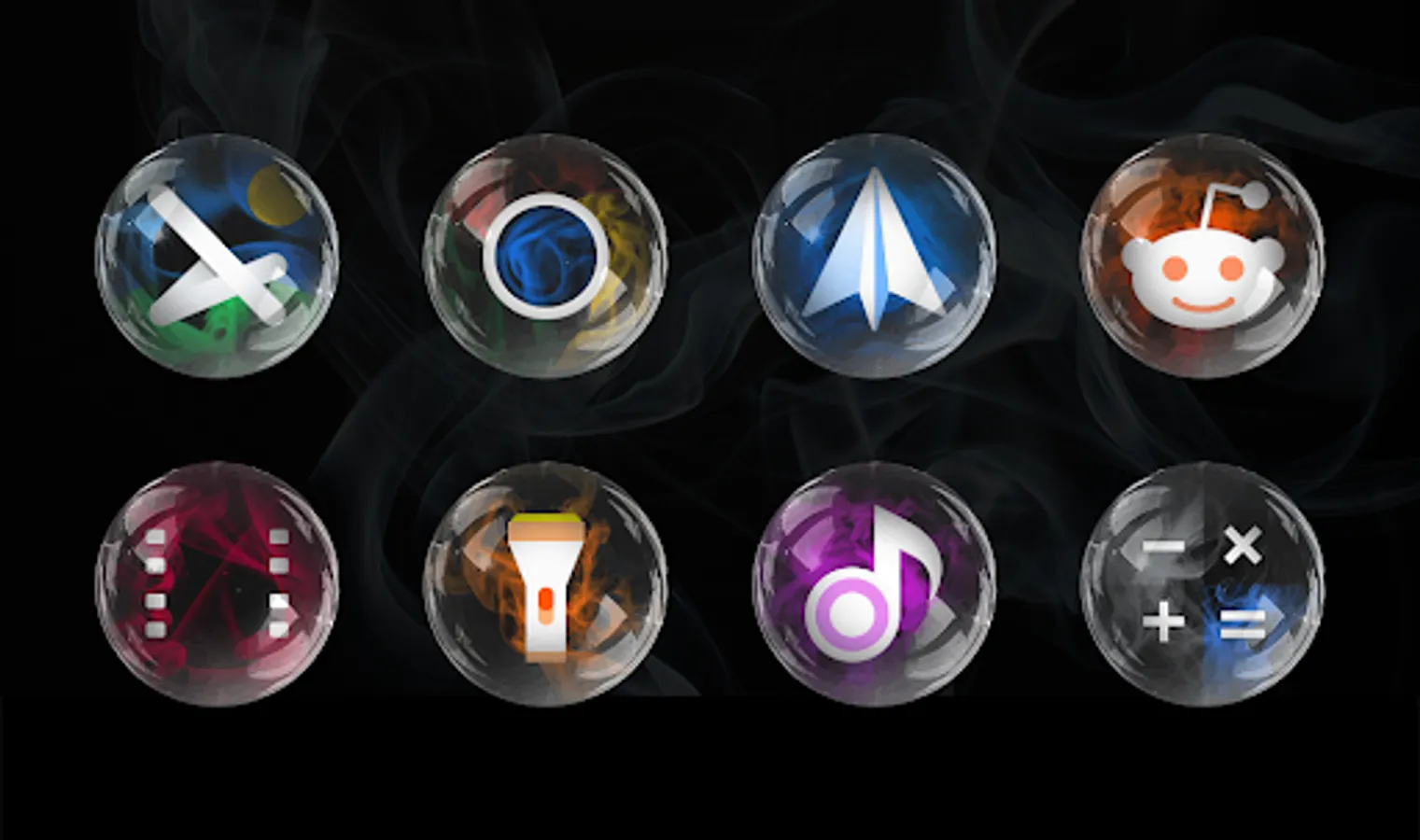 The icons are individually crafted to look like the essence of each app floating in smoke-filled glass orbs, complete with photorealistics reflections. My wife thinks they look like those old school glassy marbles with threads of paint in them. I see her point. Whatever they look like, the do look great, and I'm happy to share the result with you all :-)