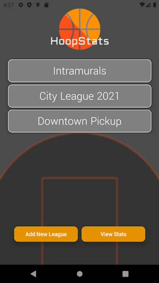HoopStats is an app for tracking your personal stats in basketball games. Games are placed within leagues so stats can be viewed for just one league or from all games combined.