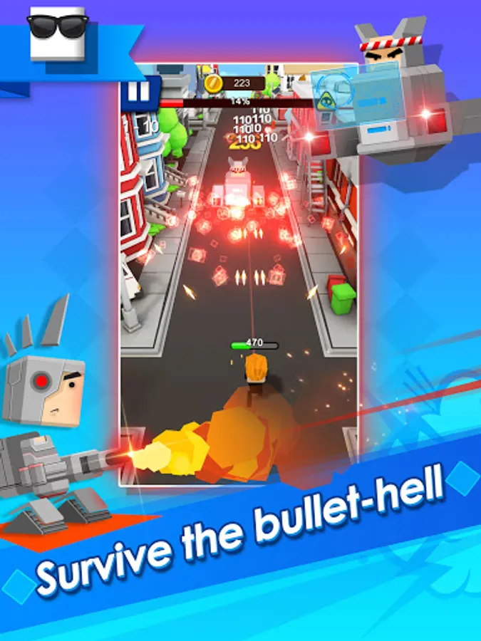 This is a bullet-hell shoot 'em up with rogue-like elements, which is presented in a low-poly art style to create a unique casual mobile shooter.