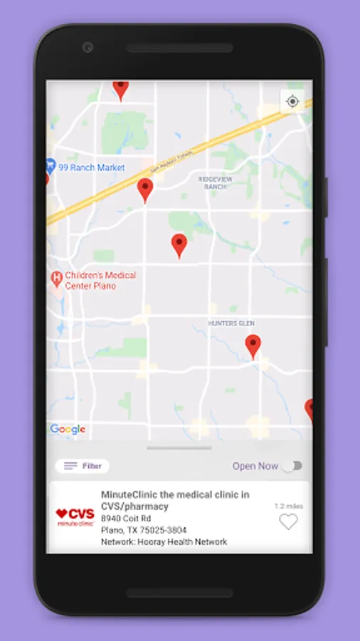 The Hooray Health app allows patients to conveniently find the nearest location. Each location features hours of operation, services available and contact information.