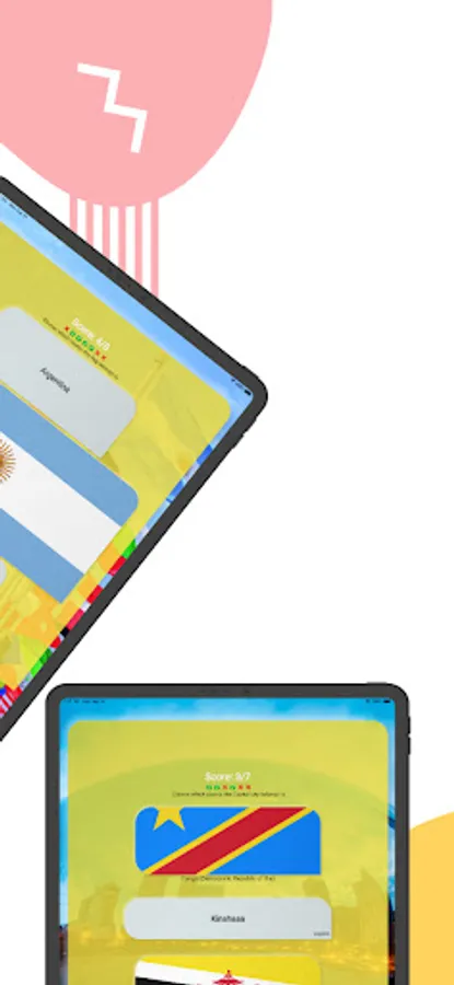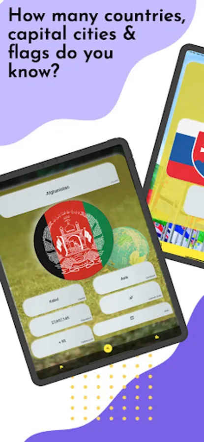 FUN AND INTERACTIVE - This App boasts two quiz section to get the user involved, one quiz gives a country name and 2 flags and you get to choose which is the correct flag. The other quiz give a capital city and you choose which country this capital city.