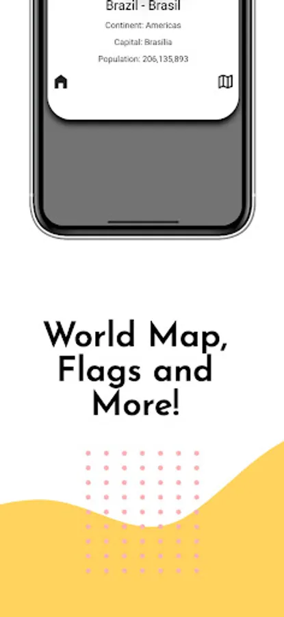 HOME PAGE - PERFECT DESIGN - Countries are organised alphabetically and country information is logically placed and easy to find. Between this data are colourful flags, making for a lovely educational app for everyone.