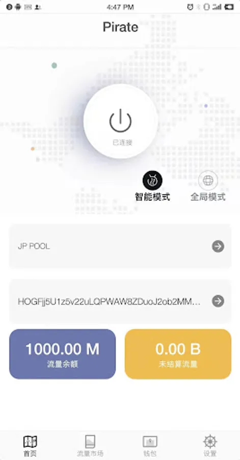 4. Click select mining pool and mining machine on homepage, then click the connection button to enter the password to start using it. After successful connection, the homepage displays the connected status bar, and the small VPN icon is displayed in the status bar.