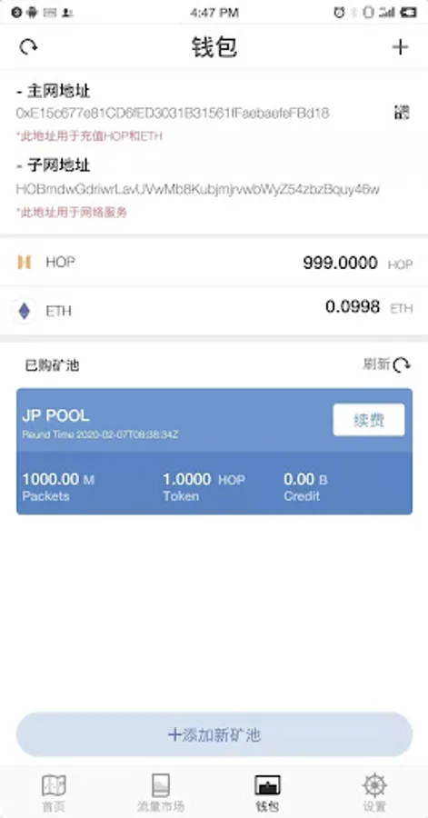 2. Click Settings to go to the settings interface to apply for test coins. There will be a slight delay in receiving test coins. It will take about 15 seconds after the prompt for successful receipt. Click the wallet refresh button to see if you have received the test coins.