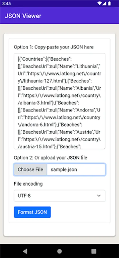Load your JSON files on your phone. You can also choose to format these JSON files to make the JSON file more readable.