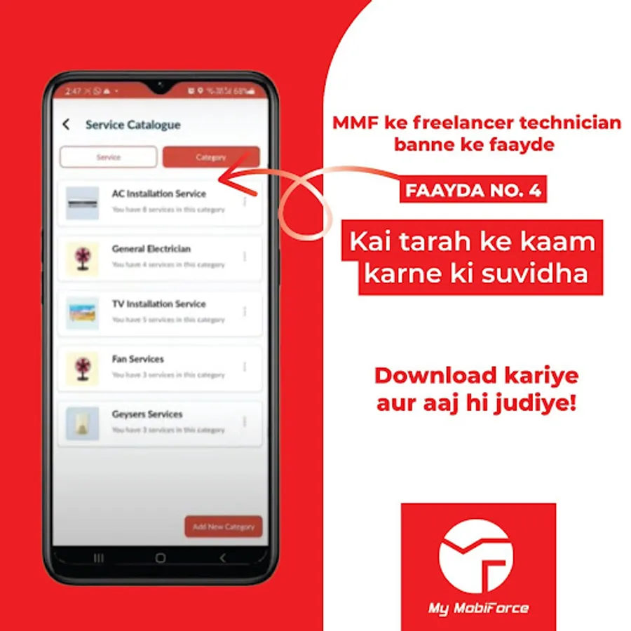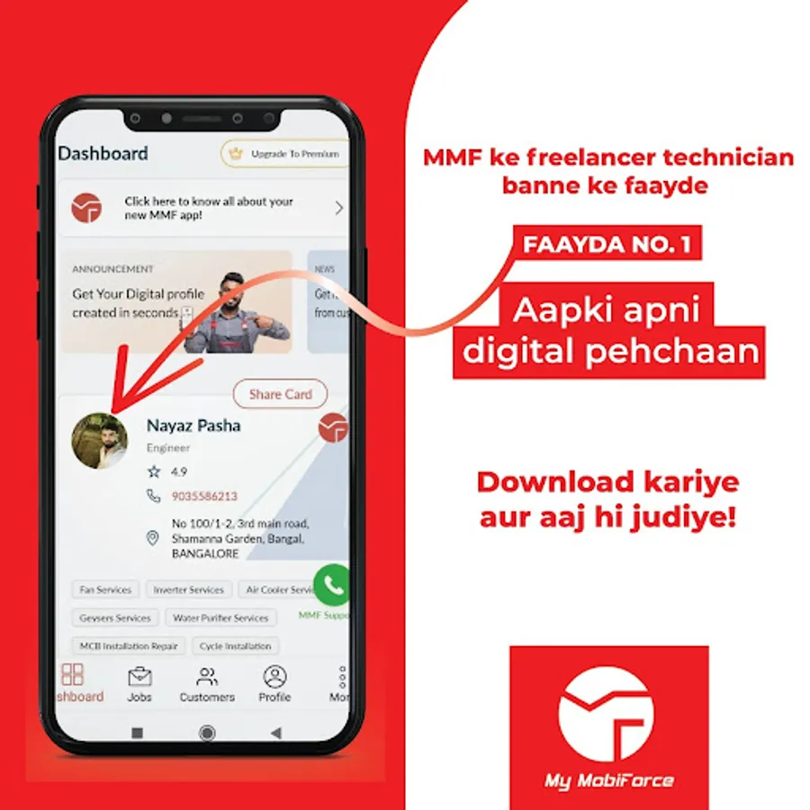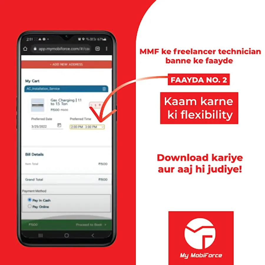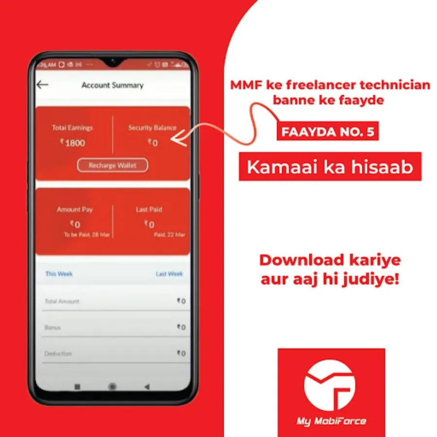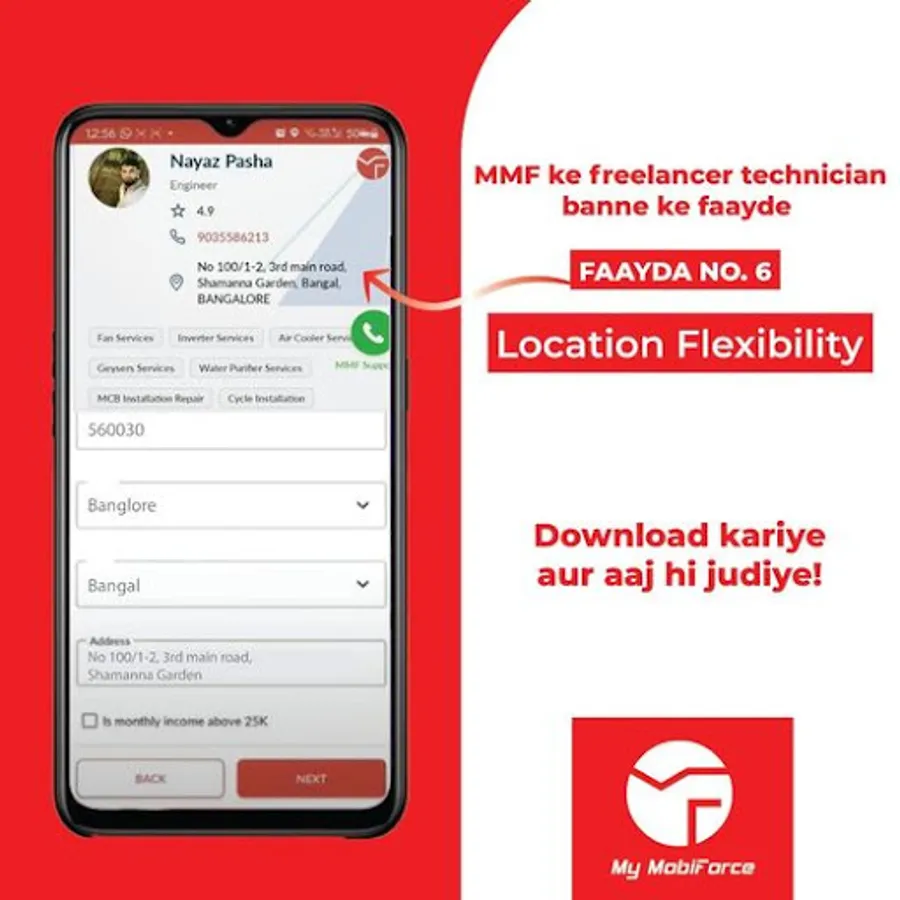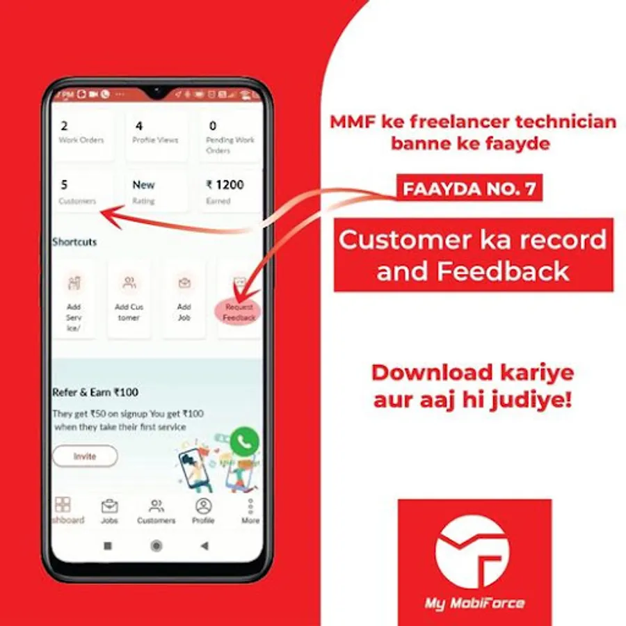 अन्य Technician benefits जानने के लिए https://www.mymobiforce.com/for-technicians/ पर जाएं।