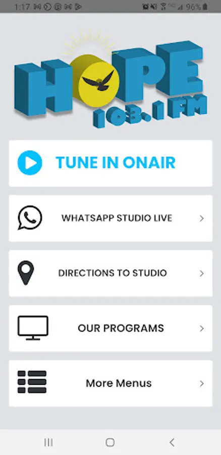 Hope FM is a non-denominational and non-political Radio station that is committed to sharing the full unadulterated Gospel of Jesus Christ so that every listener can have the opportunity to receive Salvation.