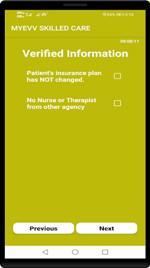 MYEVV skilled care app allows Skilled workers such as speech therapists, Physical therapists, Occupational therapists, Nurses; who visit patients homes to electronically clock in and out of the shifts. The system logs key information including date, time and location by using the GPS of the phone or tablet. Also, the app will allow to record and log information regarding services performed and their related data such as for how many minutes and at what length it is performed.