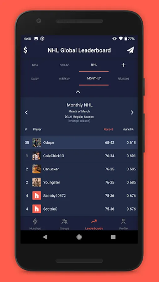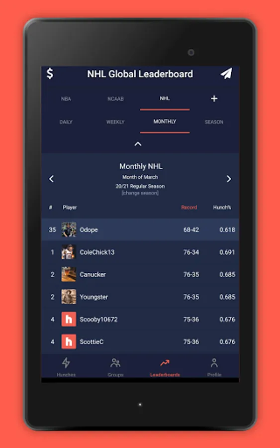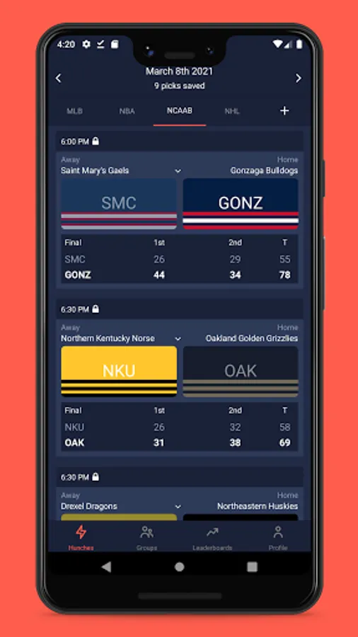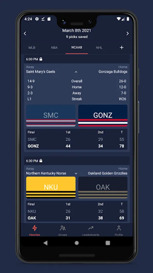 Think you've got the NCAA Basketball, NFL, NBA, MLB & NHL figured out? Put your predictions to the test with Hunch Sports Pick'Em Game! Pick the winners for every basketball, baseball and hockey game and see where you stack up against other Huncher's on our Global Leaderboard.