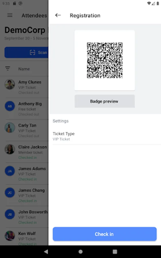 - Offline check-in and badge printing for a seamless check-in experience even if the internet connection is poor