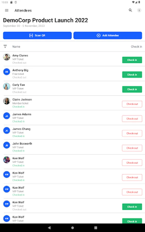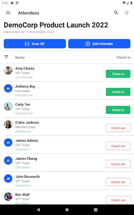 - Sync guest list data during the event in real-time (if the check-in device is online)