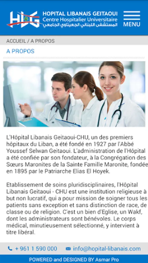 As a multidisciplinary care hospital, the Lebanese Hospital Geitaoui is a religious non-profit hospital with mission to treat all patients without any exception regardless of race, class or creed. It is a Church property, a Wakf, and benevolently is administrated. The medical body is carefully selected and acts as a liberal profession.