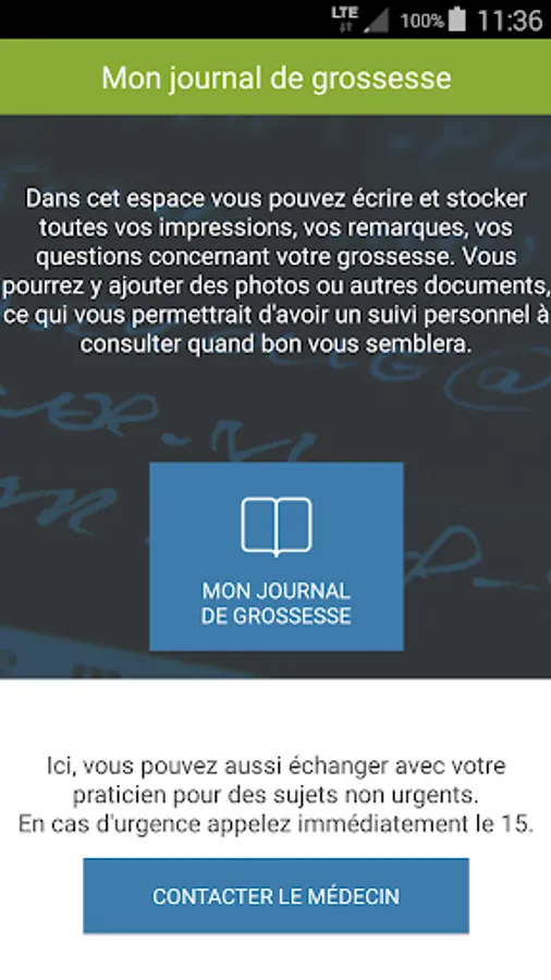 Finally, designed as an interface between you and the team of motherhood, this application allows you to interact with midwives and doctors outside appointment. If the stay abroad, this application will facilitate contact with the team.